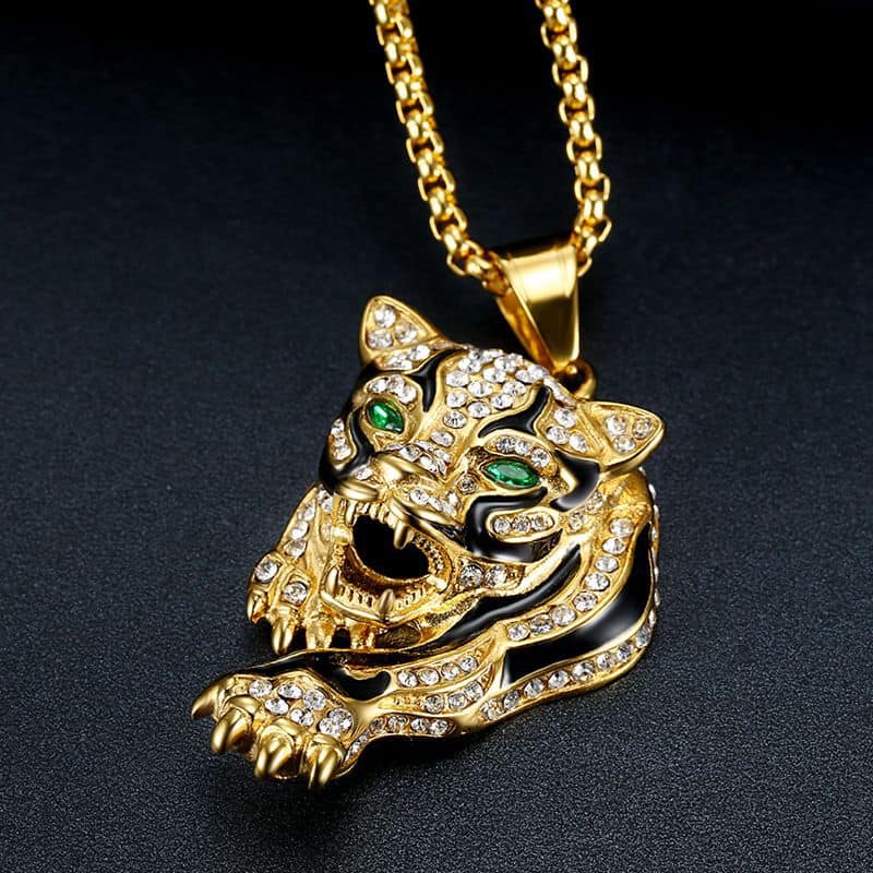 • El colgante de tigre en una cadena de oro le da a esta joya un estilo único.