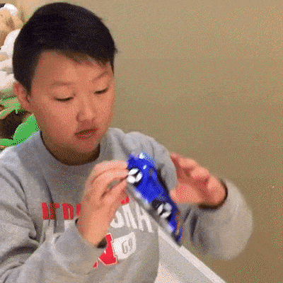 Vi a mi hija de 6 años jugando con él durante horas, mi hijo de 4 años en cambio comienza a mirar, lo más gracioso es cómo se sube por las paredes y conduce boca abajo en el techo, como en la foto se sube por las paredes. En general, es un juguete bueno a un precio razonable, la calidad también es excelente.