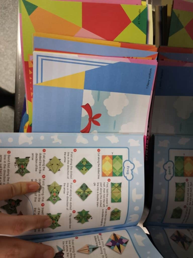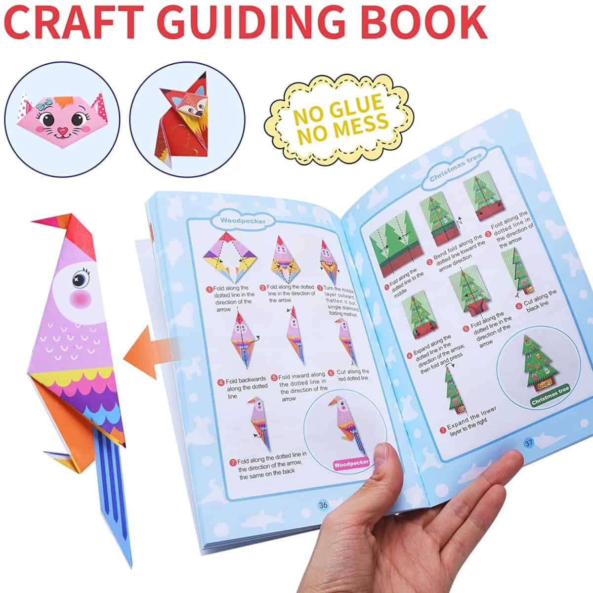 - Los niños pueden usar el simple y claro manual de instrucciones con imágenes y descripciones para completar proyectos simples de origami. Esto le dará confianza para intentar más proyectos.