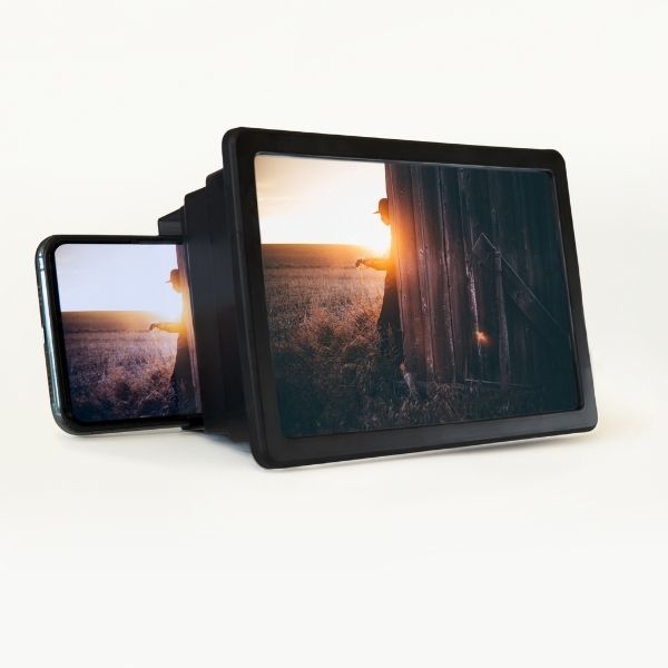 Un artilugio estupendo para ver películas y programas en el teléfono. ¡Casi lo mismo como en la tele pequeña excepto que puedo moverlo de un lado a otro de la cama!
