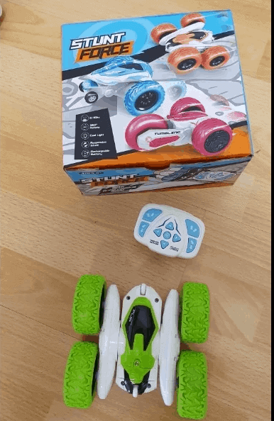 El coche controlado por radio Stunt Force tiene una batería de níquel-cadmio de 4.5 V que se recarga más rápido que una batería normal. ¡Esto permite que sus hijos se diviertan más!
