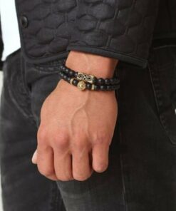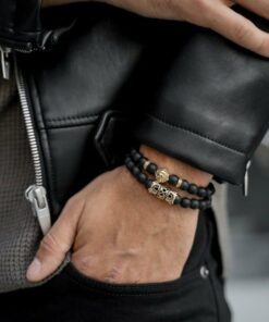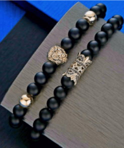 • Material: piedra natural y elastina. Esta pulsera está hecha de rosarios, utilizando piedras naturales de ónix negro y aleaciones de alta calidad que los unen.