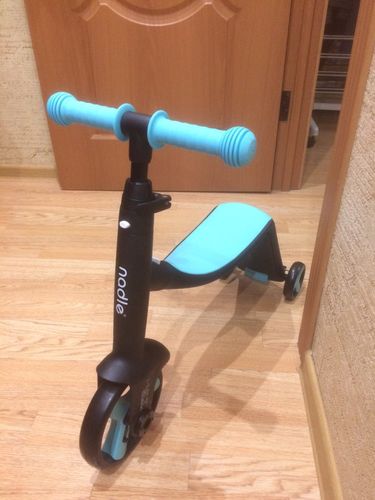 Una scooter muy guay. Mi hija tiene ahora casi 2 años, y como es muy pequeña para usar una scooter, lo utiliza como bicicleta. Es de muy buena calidad, las ruedas son silenciosas, el volante es regulable en altura y en el modo scooter hay freno.