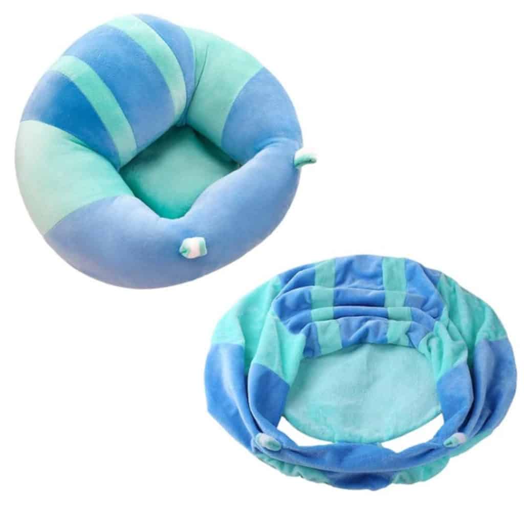 El sofá cuenta con orificios para las piernas que proporcionarán estabilidad y eliminarán la posibilidad de caerse. La tela también tiene un asiento fijo a la base del sofá para evitar resbalones por el suelo.
