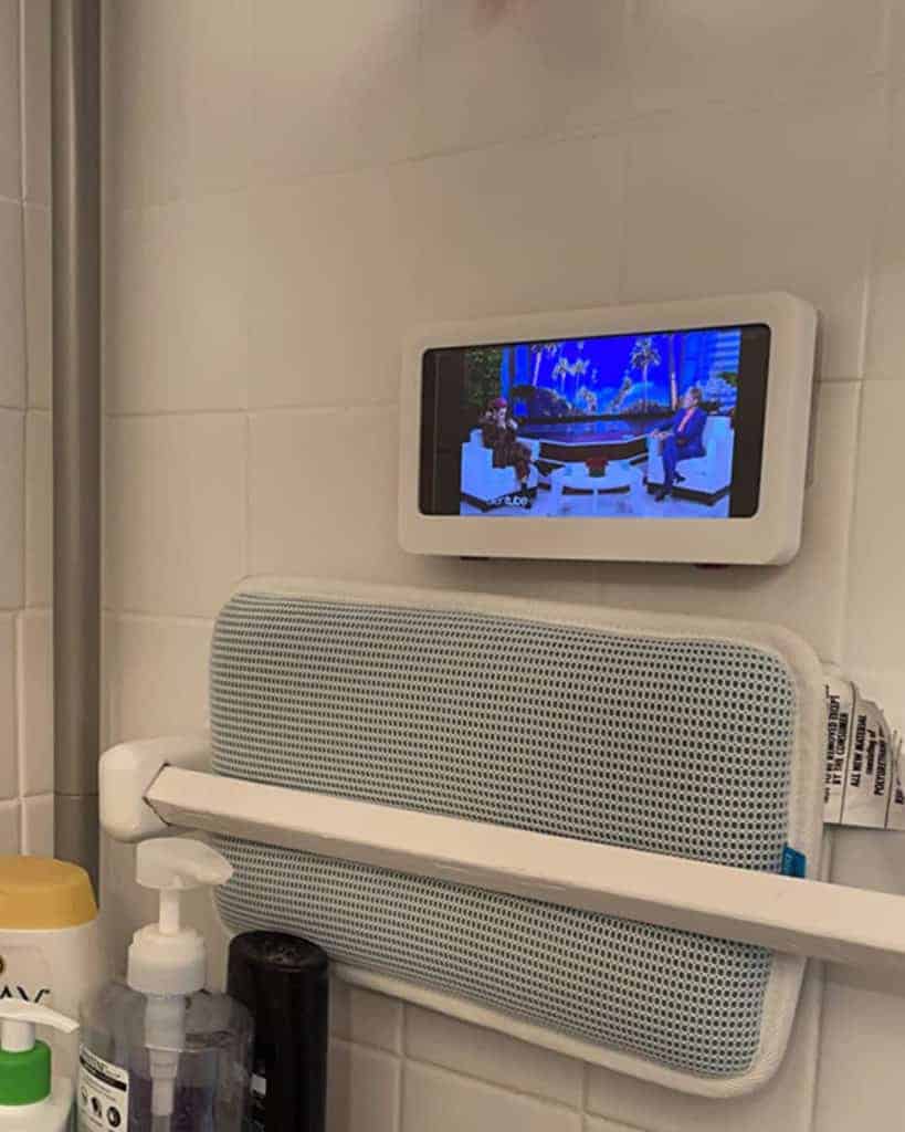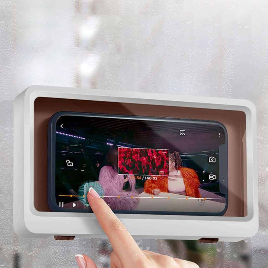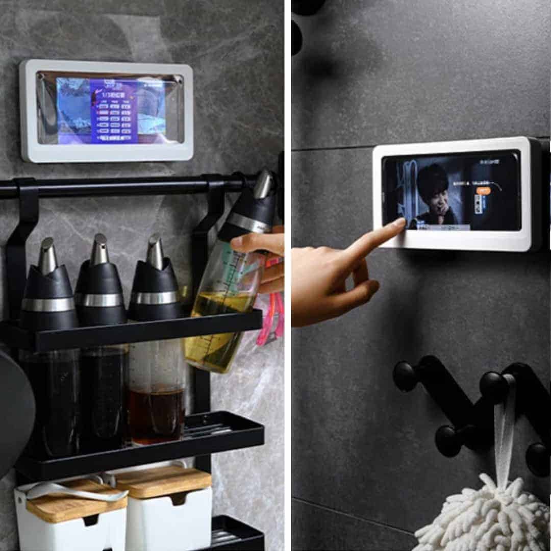 Puedes escuchar música, ver videos mientras te duchas o cocinas. Ventana anti vaho de alta perspectiva, el soporte para teléfono de ducha será un buen compañero en tu baño, cocina, inodoro.