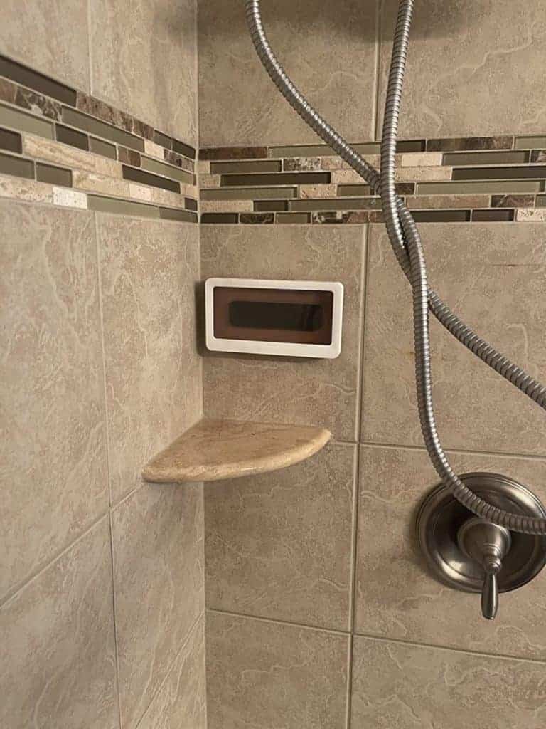 Recibí este soporte y todo fue bastante fácil. Sostuvo mi 12 pro max sin problemas. La parte posterior es un adhesivo que se adhiere a los azulejos de mi ducha, por lo que será interesante ver si se mantiene sin problemas dada la condensación en la ducha.