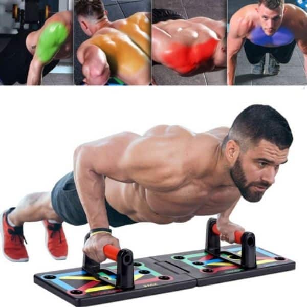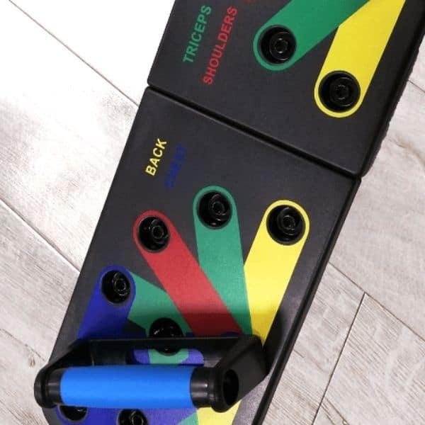 La tabla te deja elegir diferentes posiciones de brazos para ejercitar diversos grupos de músculos.